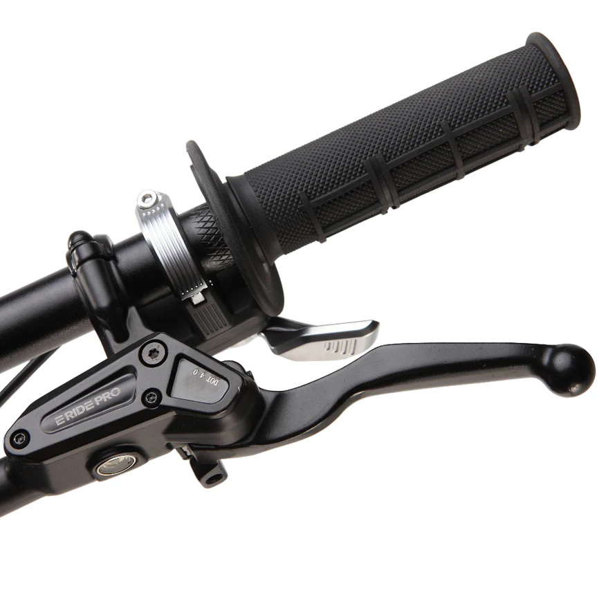 Now, what’s the use of power if you can’t control it? One of the biggest concerns riders have with high-powered bikes is braking. Will it stop when you need it to? The E Ride Pro SR puts those worries to rest with upgraded brakes that give you unmatched stopping power.