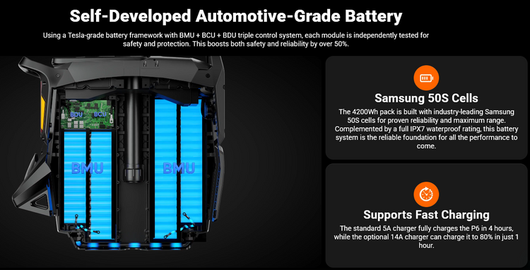 The battery pack is specified as 4,200 Wh using Samsung 50S cells