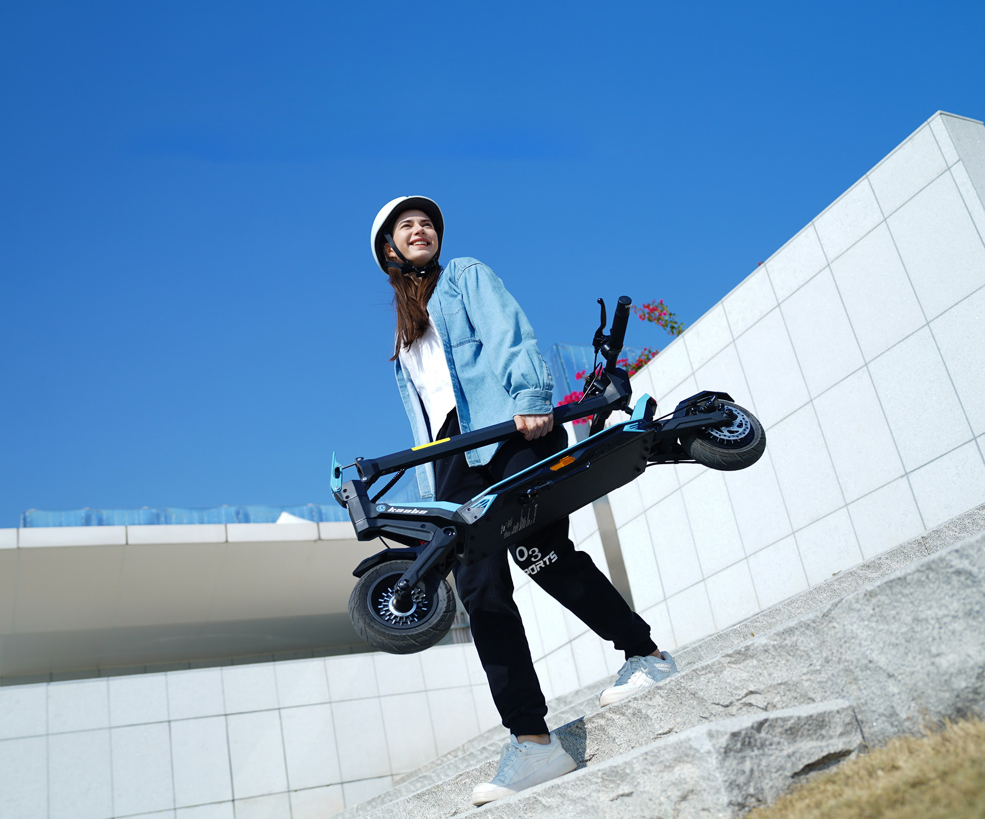 Convenient one-step folding mechanism, allowing you to quickly and easily fold the scooter for storage or transport. This user-friendly design ensures portability and convenience, making it ideal for urban commuters.