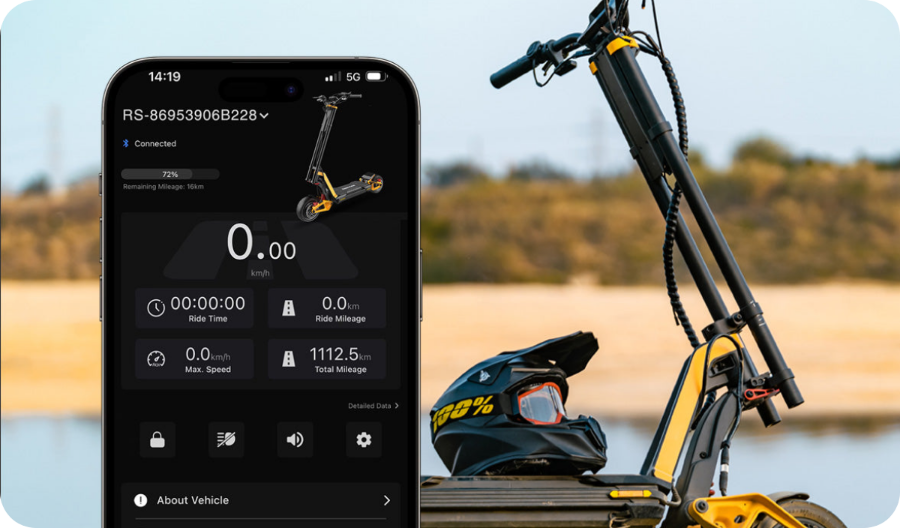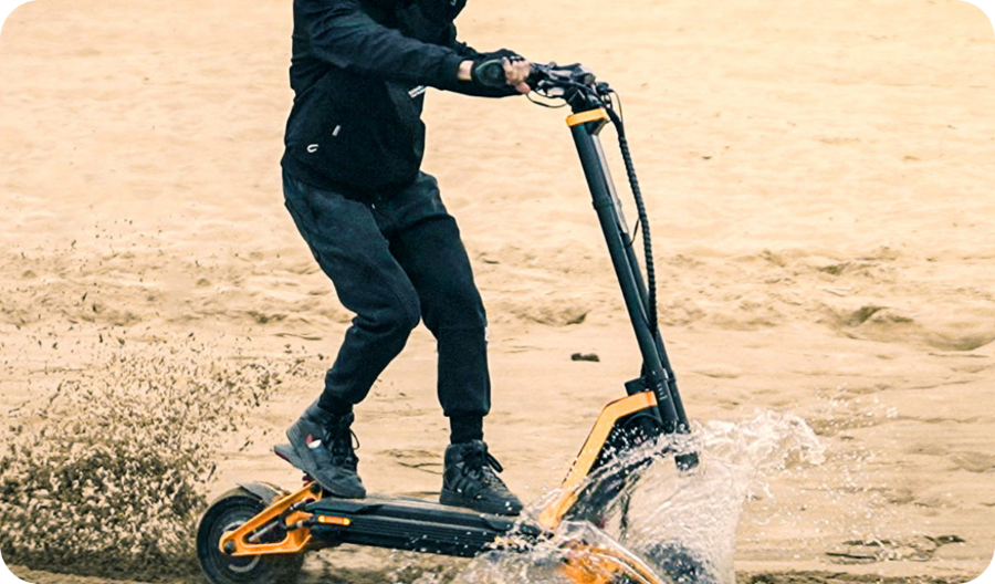 The INMOTION RS can reach a top speed of up to 110 km/h, thanks to its dual 2000W motors and a 72V 40Ah battery.