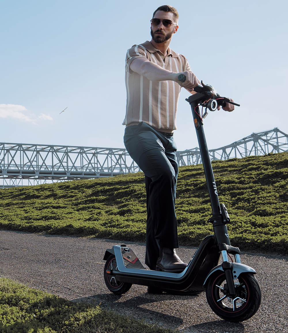 Don't let rough roads limit your ride. KQi 300X features an all-new, dual-tube hydraulic suspension that lets you glide over any uneven surface with ease. Travel further with up to 60km of range on a single charge, and reach speeds of up to 38 km/h. Experience maximum performance and take on any road with the KQi 300 series.