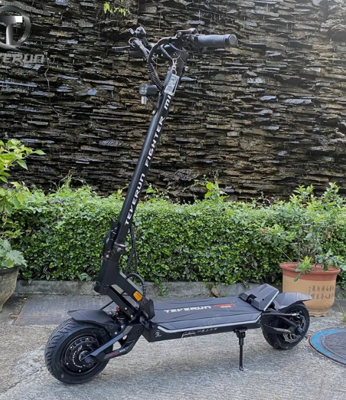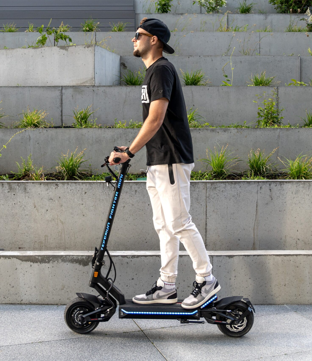Meet the Teverun Fighter Mini Pro, a machine that packs a punch in a compact package. Think of it as the pocket rocket of the scooter world. Small in stature but mighty in performance, this scooter is the ideal blend of agility and power, offering 3200W of raw muscle and a top speed of 65 km/h, all while effortlessly conquering your daily commute or weekend escapades.