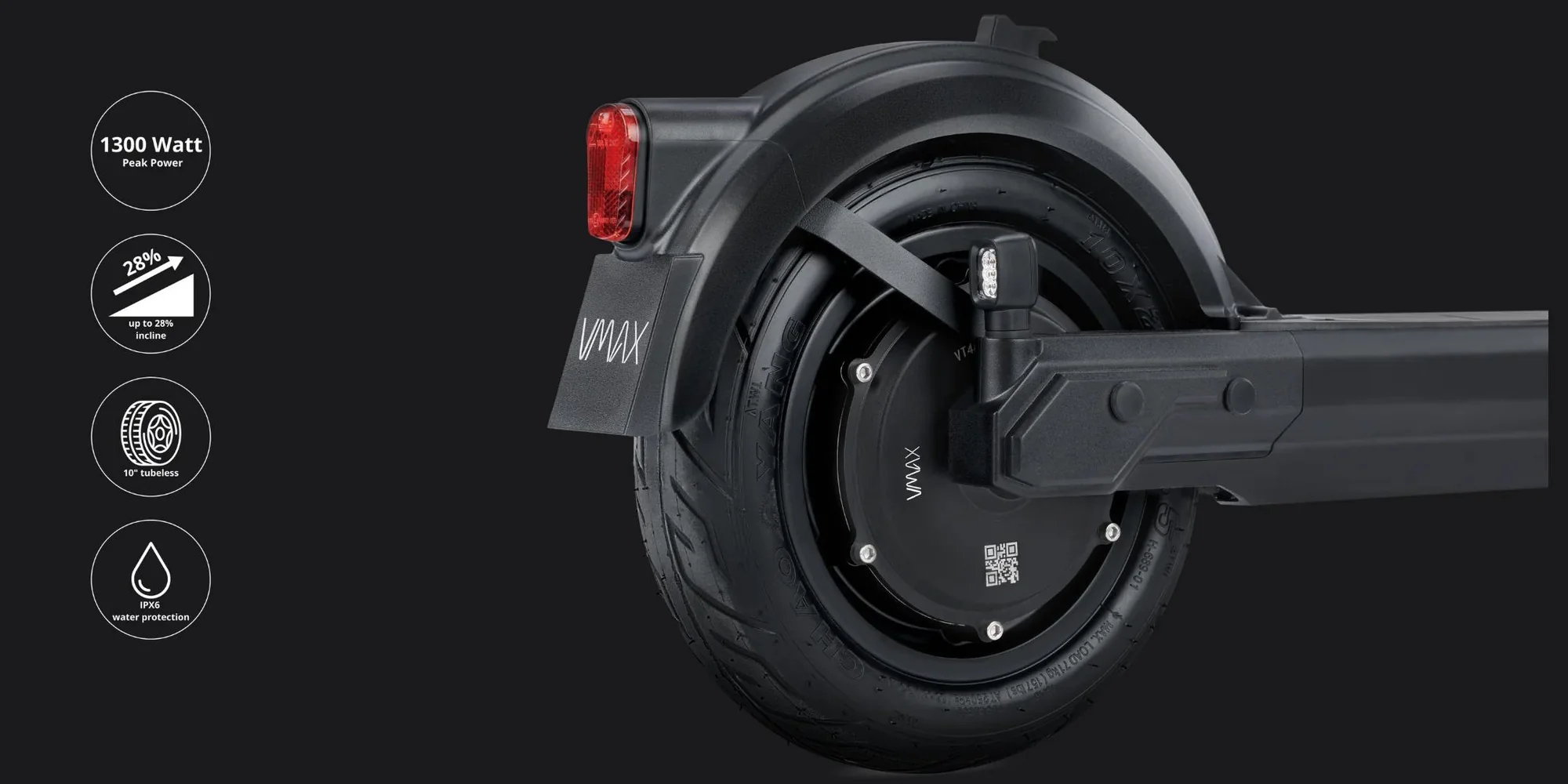 Experience the power of VMAX's motor and its 1300 watt peak power, designed to deliver incredible acceleration and conquer gradients up to 28%.